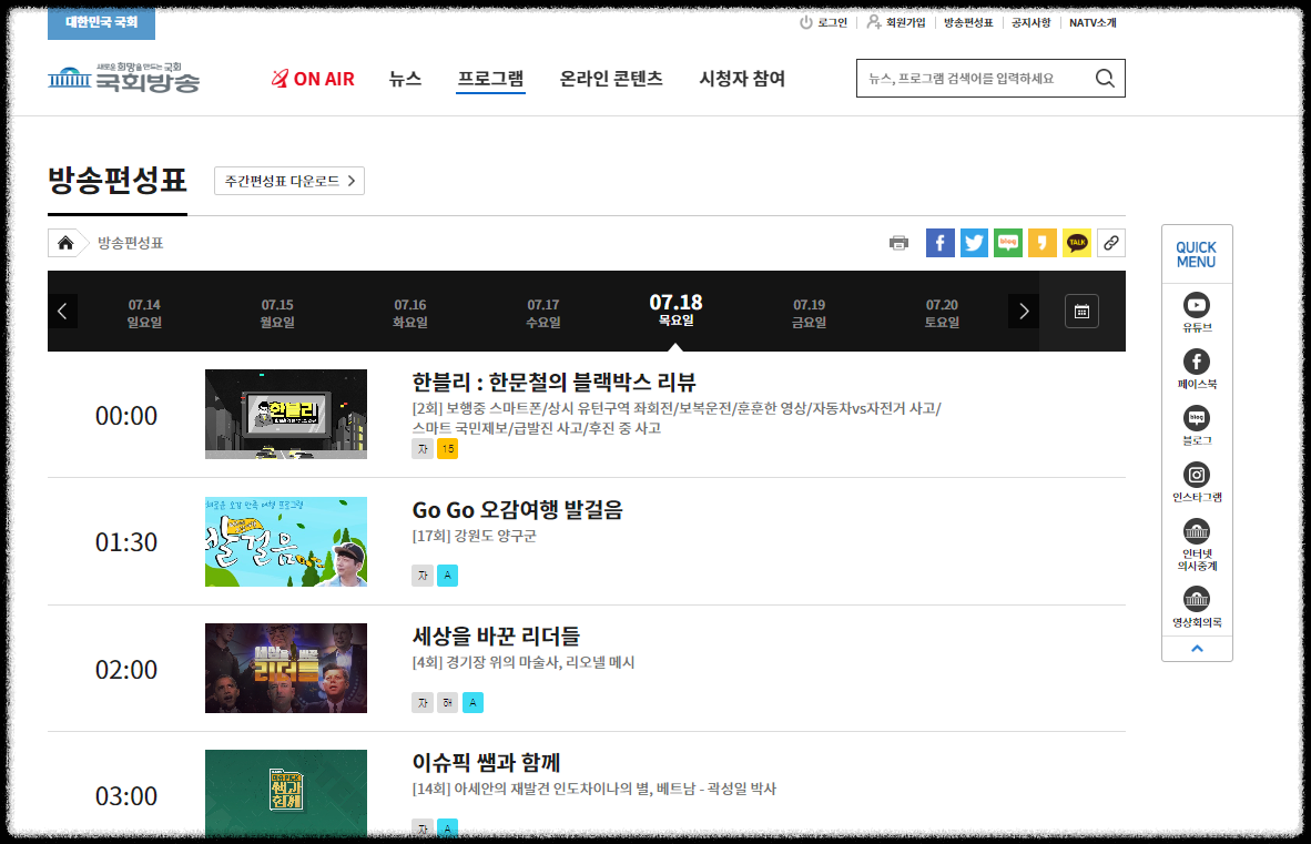 국회방송 NATV 온에어 바로가기 주요 프로그램 시청방법 청문회 국회 라이브