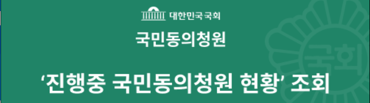 현재 홈페이지 과부화로 접속이 불가능한 상태라고 합니다. 국회에서는 국민 동의 청원 현황을 조회할 수 있도록 링크를 준비했습니다.